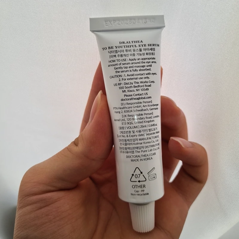 معرفی سرم دور چشم جوانساز دکتر التیا سرم دور چشم دکتر التیا یکی از بهترین انتخابها برای مراقبت از پوست حساس و ظریف دور چشم است. این محصول با ترکیبات منحصربهفرد و تاثیرگذاری فوقالعاده، توانسته به یکی از محصولات پرطرفدار در دنیای مراقبت از پوست تبدیل شود. سرم دور چشم دکتر التیا برای کاهش تیرگی، پف و خطوط ریز دور چشم طراحی شده و بافتی سبک و جذب سریع دارد. اگر به دنبال محصولی هستید که نتایج مشهودی ارائه دهد، این سرم بهترین انتخاب است. ترکیبات کلیدی سرم دور چشم دکتر التیا 1. هیالورونیک اسید:این ماده آبرسان قوی، رطوبت پوست را تامین کرده و به کاهش خطوط ریز و خشکی دور چشم کمک میکند. 2. پپتیدها:پپتیدها با تقویت تولید کلاژن، استحکام پوست را افزایش داده و از افتادگی جلوگیری میکنند. 3. نیاسینامید:درمان لکه ها تیره، و کاهش چروک و خطوط دورچشم 4. آدنوزین:کاهش چروک دورچشم با تزریق انرژی به سطح پوست 5.توکوفرول(ویتامین E):خنثی سازی رادیکال های آزاد و در نتیجه کاهش روند پیری پوست 6. ویتامین C:خاصیت روشنکننده و آنتیاکسیدانی ویتامین C به کاهش تیرگی دور چشم کمک کرده و پوست را شادابتر میکند. 7. عصارههای گیاهی:این سرم با ترکیبات گیاهی آرامشبخش مثل عصاره بابونه و آلوئهورا، پوست حساس اطراف چشم را تسکین داده و از تحریک آن جلوگیری میکند. مزایای سرم دور چشم دکتر التیا 1. کاهش پف و تیرگی: با استفاده مداوم، تیرگی و پف دور چشم به طرز محسوسی کاهش مییابد. 2. آبرسانی عمیق: این سرم رطوبت پوست را تامین کرده و مانع از خشکی و کشیدگی اطراف چشم میشود. 3. جذب سریع و بافت سبک: سرم دکتر التیا به سرعت جذب شده و هیچ اثری از چربی یا سنگینی روی پوست باقی نمیگذارد. 4. کاهش چینوچروک: با تحریک تولید کلاژن، خطوط ریز و چروکهای اطراف چشم بهتدریج محو میشوند. 5. مناسب برای انواع پوست: این محصول برای همه نوع پوست، حتی پوستهای حساس، قابل استفاده است. روش استفاده از سرم دور چشم دکتر التیا 1. ابتدا پوست صورت و اطراف چشم را بهآرامی تمیز و خشک کنید. 2. مقدار کمی از سرم را با نوک انگشت روی پوست اطراف چشم بزنید. 3. با ضربات ملایم (بدون کشیدن پوست) سرم را پخش کنید تا جذب شود. 4. روزانه صبح و شب از این سرم استفاده کنید. این محصول با ضمانت اصالت کالا توسط ( انتیا ) ارسال میگردد حجم : 25 ML تاریخ انقضا : 2028 MADE IN KOREA ساخت کره