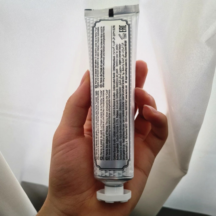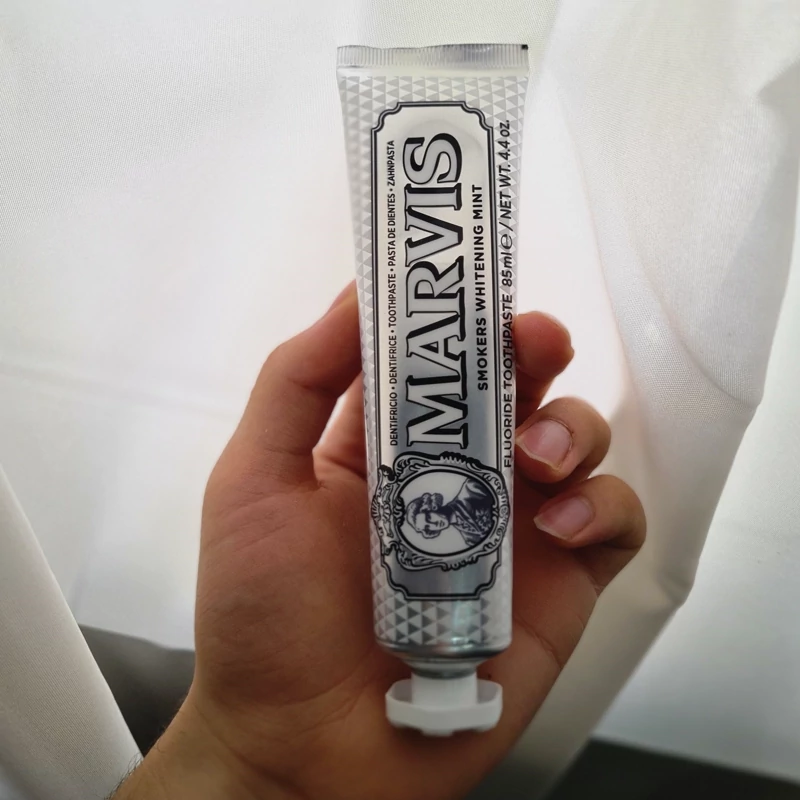 خمیردندان مارویس مخصوص افراد سیگاری خمیردندان Marvis Smokers Whitening Mint مخصوص افراد سیگاری یا مصرفکنندگان قهوه/چای است. این محصول با فرمول ملایم و تخصصی، لکهای سطحی را بدون ایجاد حساسیت یا آسیب به مینای دندان از بین میبرد، بهعلاوه تازهسازی طولانیدهانی را با طعم نعناع فراهم میکند. اگر به دنبال سفید شدن ملایم، محافظت کامل و حس لوکس در روتین روزانه هستید، این خمیردندان انتخابی حرفهای و مطمئن است ویژگیهای کلیدی سفیدکننده لکهای سطحی ناشی از سیگار، قهوه یا چای فرمول محافظ با استفاده از پلیمر ویژه، فلوراید و زایلیتول طراوت طولانیمدت دهان با طعم نعناع خنک ملایم بر مینای دندان، حفظ سلامت بدون ساییدن فرمول وگان و انتخابی مناسب برای آسیبدیدگان پوست، بدون مواد حساسیتزا روش استفاده هر روز صبح و عصر مقداری از خمیردندان را روی مسواک نرم بزنید. به صورت معتدل (حدود 2 دقیقه) دندانها را مسواک کنید و سپس بهخوبی دهان را شستوشو دهید. برای نتیجه بهتر، 30 دقیقه پس از مصرف سیگار، قهوه یا چای استفاده شود. مسواک را هر 2–3 ماه یا پس از پرزکاری تعویض کنید. ترکیبات مؤثر پلیمر سفیدکننده برای زدودن لکها بدون آسیب فلوراید (fluoride): جهت محافظت مینای دندان زایلیتول: کمک به کنترل باکتریها و تقویت سلامت دهان سیلیکا ملایم: پاککنندگی بدون ساییدن این محصول با ضمانت اصالت کالا توسط ( انتیا ) ارسال میگردد حجم : 85 ml تاریخ انقضا : 2028